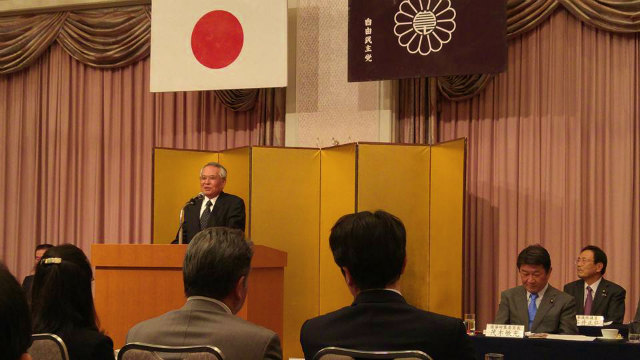 選挙対策本部長・県連会長橋本岳衆議院議員のご挨拶です。続いて、逢沢一郎、阿部俊子、山下貴司、池田道孝衆議院議員、石井正弘、藤井基之参議院議員、選挙対策本部長代理・県連幹事長天野学県議会議員がご挨拶されました。
