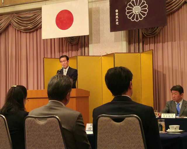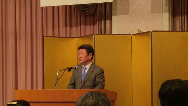 続いて、公明党岡山県本部代表代行の高橋英士県議会議員が激励の挨拶、そして、自由民主党選挙対策委員長茂木敏充衆議院議員が激励の挨拶をされました。