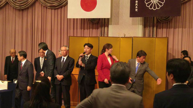 それから、全員でガンバローコールをして閉会しました。ガンバローコールの発声は、選挙対策本部幹事・県連青年局長江本公一県議会議員です。