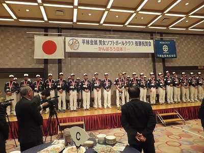 男子ソフトボールクラブ二冠達成、優勝祝賀会』に岡山県共生高