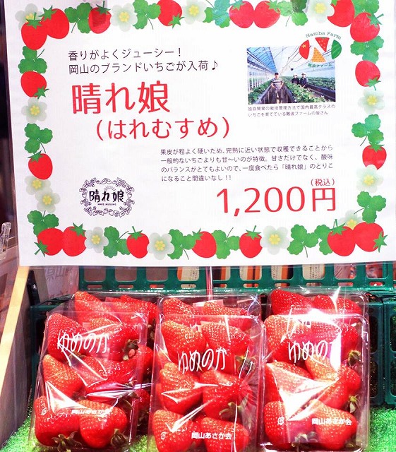 「晴れ娘」、いいでしょ。イチゴに力を入れる岡山県です。東京のアンテナショップ「とっとり・おかやま新橋館」、3月中数量限定入荷だそうです。お急ぎください。