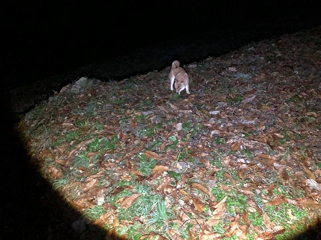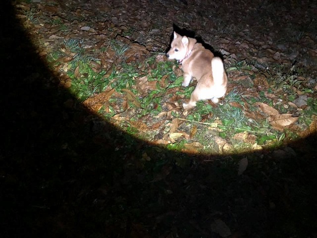 帰宅して、待たせたねの「夜のお散歩」、この懐中電灯、明るいね。