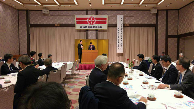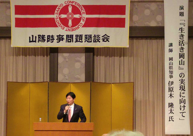 17時30分から岡山市内のホテルで開催された『山陽時事問題懇談会』に出席しました。今日の講師は、岡山県知事伊原木隆太氏。演題は、「『生き活き岡山』の実現に向けて」でした。毎年この時期には、岡山県の次年度予算について、伊原木知事が講演されます。