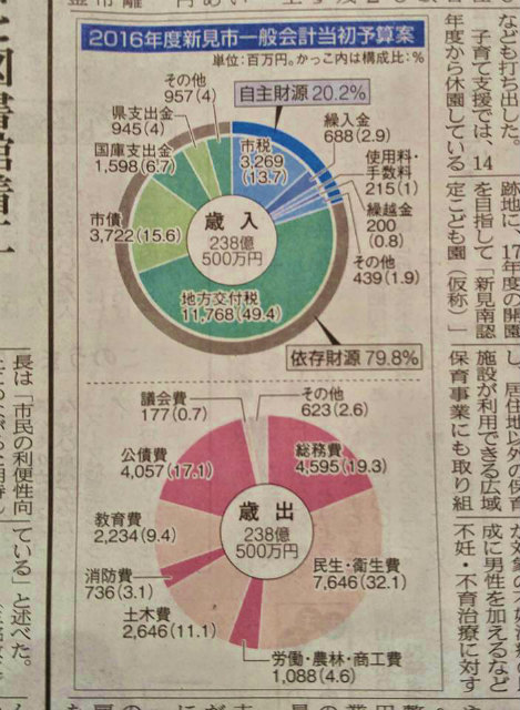 今朝のニュース。「2016年度新見市一般会計当初予算案」です。