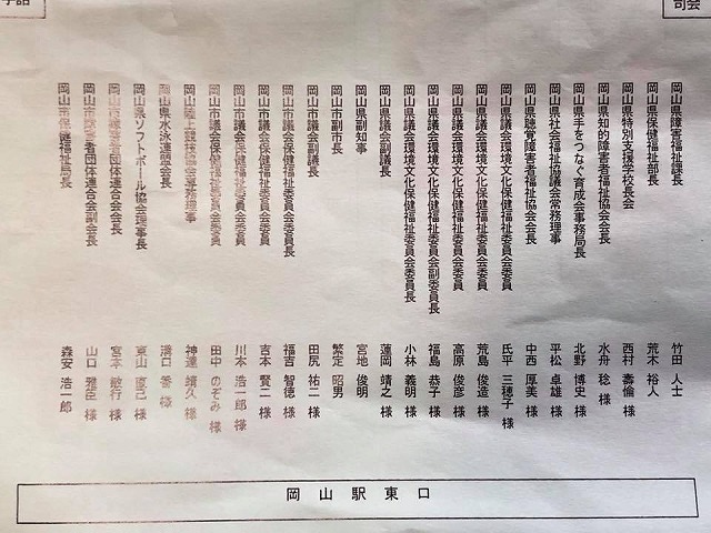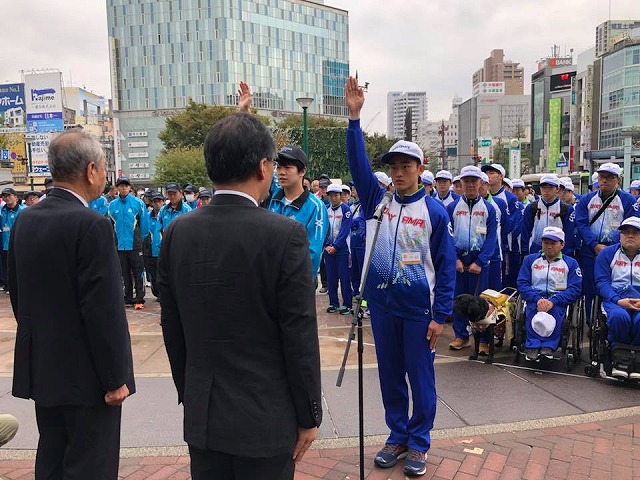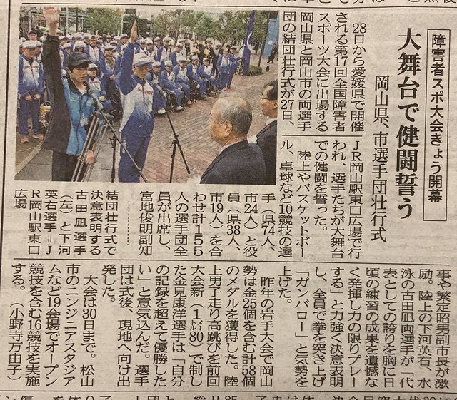 7時50分から、「岡山駅後楽園口広場」で開催された『第17回全国障害者スポーツ大会「2017愛顔(えがお)つなぐえひめ大会」岡山県選手団と岡山市選手団合同結団壮行式』に、県議会「環境文化保健福祉委員会委員長」として、議長代理の蓮岡副議長、委員の皆様と共に出席しました。