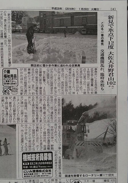 地元紙「備北民報」が、地域の天気を報じている。