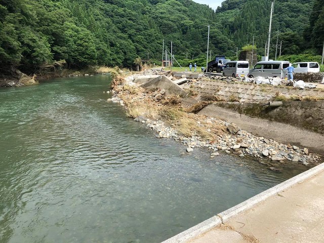 それから、2日前から道が開いた布原地区に入りました。地域の皆様が床上浸水等の後片付けに追われておられましたし、仮設道の設置や土砂の撤去も進められていましたが、あらためて豪雨災害の厳しい現状を目の当たりにしました。