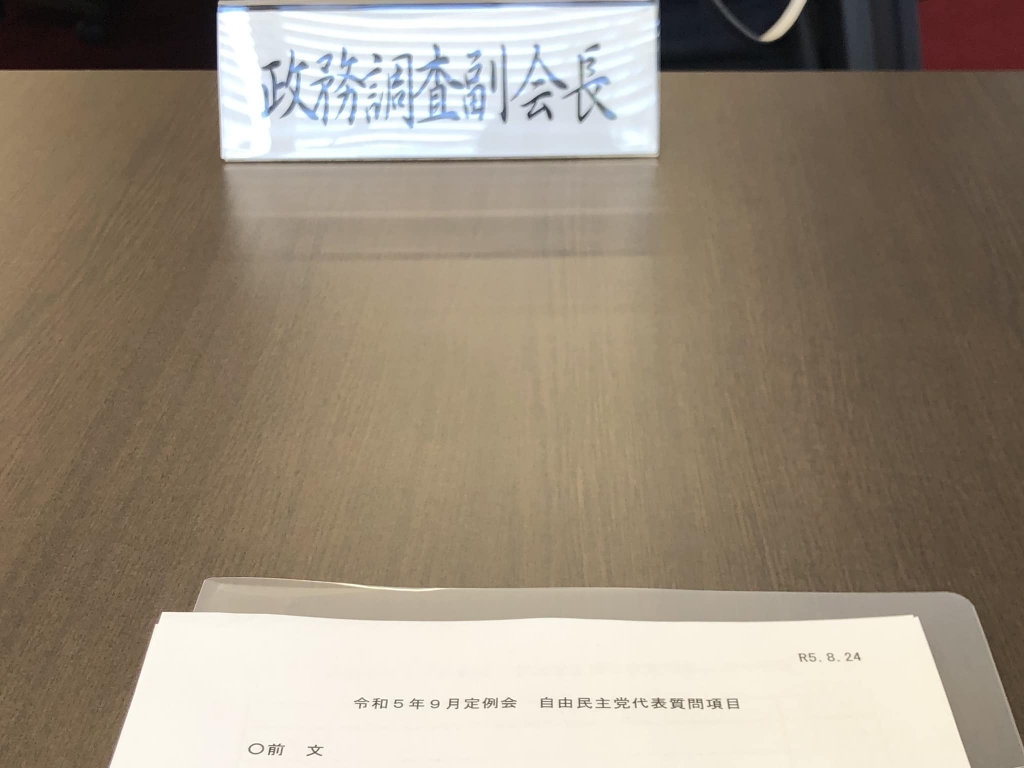 13時から、「自民党政務調査会」。正副委員長、幹事長、代表質問者で、「9月定例岡山県議会」の自民党岡山県議団代表質問文案協議。3回目です。