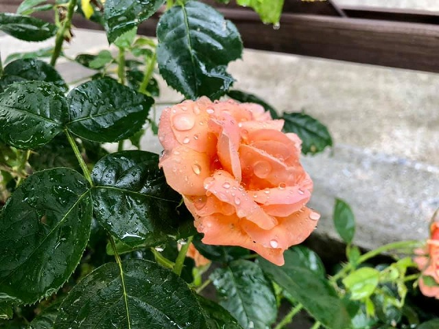 午前中、学校法人用務。帰宅して自宅飯の後、妻のバラを眺めて、これから午後の用務です。雨のバラは一層奇麗です。