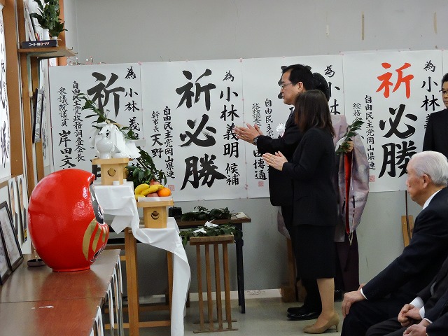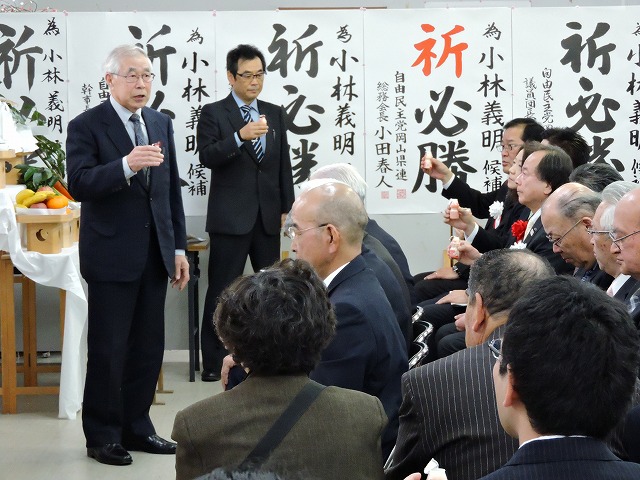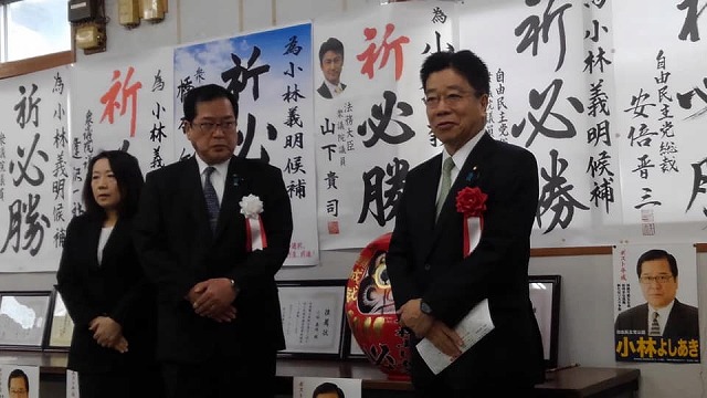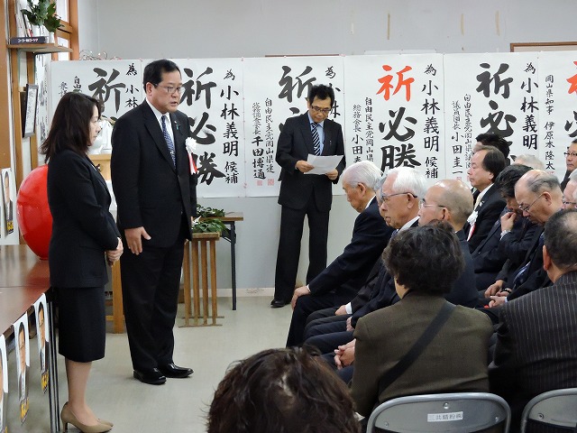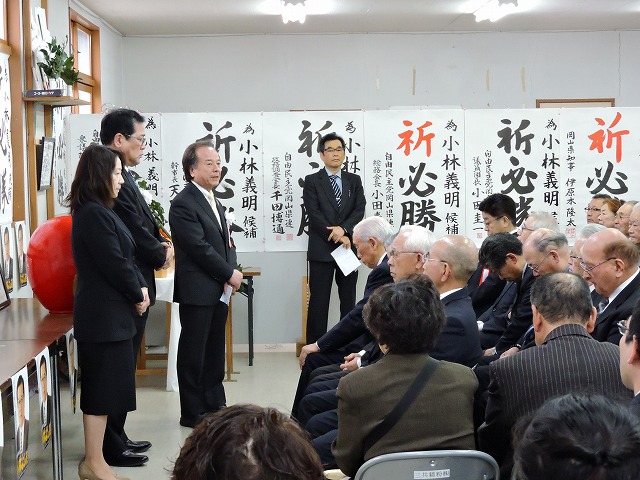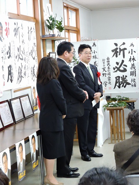 9時から、小林義明後援会「政友会」の支部長、本部役員の皆様約100名のご出席を頂き、『小林よしあき後援会事務所開き』を開催して頂きました。皆様お忙しい中、ありがとうございました。また、加藤勝信自由民主党総務会長のご臨席を賜りましたこと、何よりの喜びでありました。頑張ってまいります。