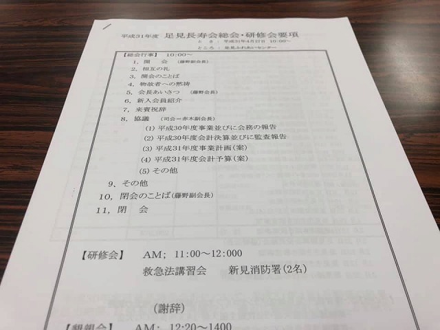 10時から、「足見ふれあいセンター」で開催された『平成31年度足見長寿会総会・研修会』に出席しました。ご盛会おめでとうございます。一言ご挨拶の機会を頂きました。ありがとうございました。