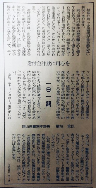 山陽新聞「ちまた」欄です。