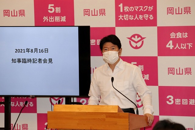 昨日16日午前11時から、伊原木岡山県知事は臨時記者会見を開き、新型コロナウイルス感染防止対策として、「まん延防止等重点措置」の適用を国に要請したことを発表しました。