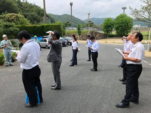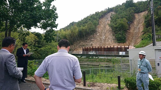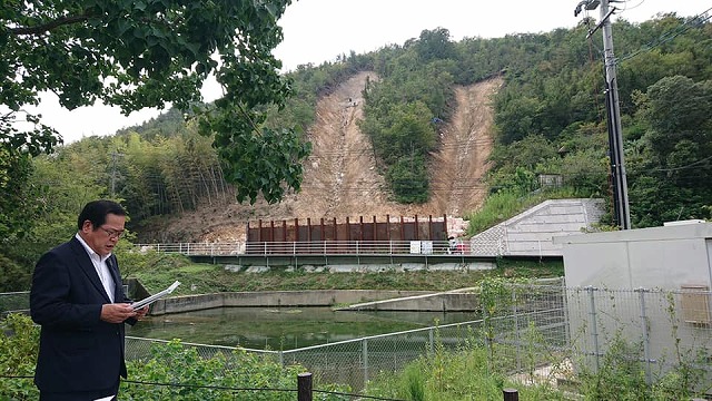 続いて井原市へ移動して、昨年7月降雨災害で被災した上出部町の山腹の復旧状況について、現場でお聞かせ頂きました。ありがとうございました。
