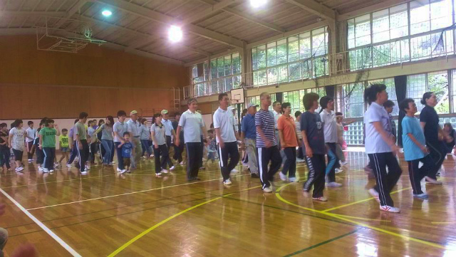 8時30分から、旧豊永小学校体育館で開催された「豊永地区民運動会」に出席し、来賓挨拶の機会をいただきました。豊永地区の皆様は、とにかく頑張っておられる。地域を支えておられる。今日も老若男女、笑顔があふれていた。運動会の準備は万全だったが、雨の為体育館での開催となった。