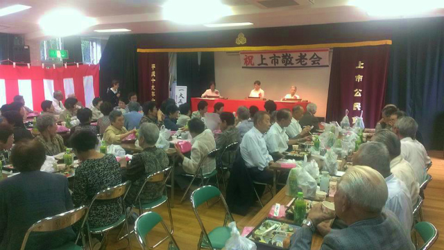 続いて、「上市敬老会」に出席しました。短い時間でしたが、ご出席の皆様にご挨拶をさせていただきました。