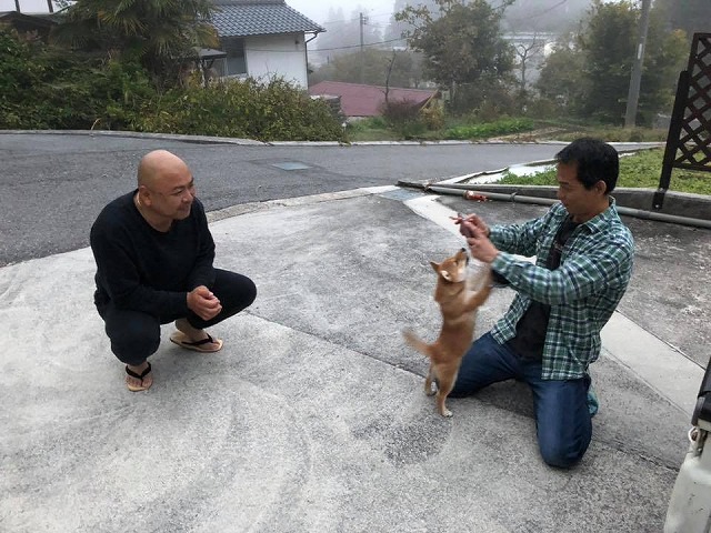 「朝のお散歩」、6時になったかな。お友達がピンポンと、ふくちゃんを訪ねてくれました。おじ様たちは、朝がはやいなぁ。もちろん大喜びの小林ふくであります。本日もよろしくお願いします。頑張りましょう。