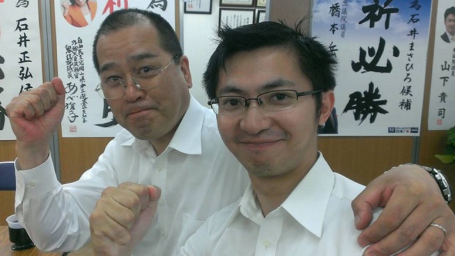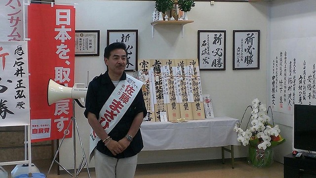 偶然だったのですか、岡山を遊説中の「ヒゲ」の佐藤まさひさ立候補者(全国区比例)が同行の渡辺吉幸県議、上田勝義県議と事務所へ。一瞬で事務所が華やいだことは言うまでもない。