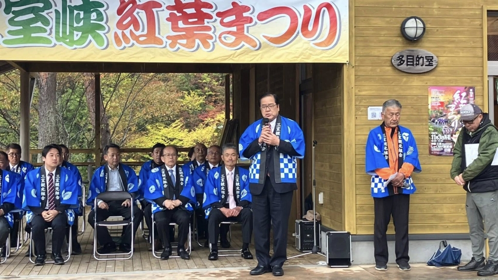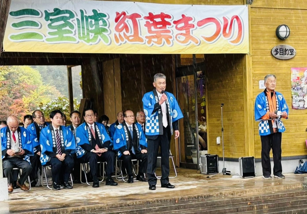 10時から、神郷三室の「しゃくなげ展望台」で開催された『第19回三室峡紅葉まつり』に出席しました。ご開催おめでとうございます。新見市神郷三室地区は、人口47人の「おかやま元気!集落」です。これから紅葉の美しい頃となります。
