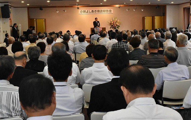 13時から、「新見商工会議所5階」で『小林よしあき県政報告会』を開催して頂きました。お忙しい中、加藤勝信厚生労働大事、石井正弘参議院議員、小野田紀美参議院議員、池田一二三市長、仲田康豊市議会議長はじめ16名の新見市議会議員の皆様、職域代表の皆様、明友会の皆様、頑張れよと駆けつけて頂いた地域の皆様等301名の皆様のご出席を頂きました。ありがとうございました。皆様のご支援を力に、頑張ってまいる所存であります。今後ともよろしくお願いいたします。(詳しくは、後程ご報告いたします)