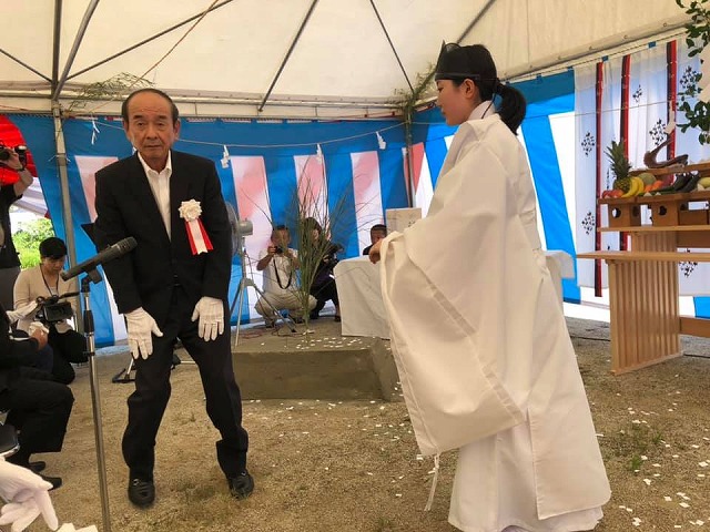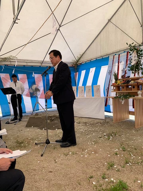 10時から、「旧正田小学校跡地」で開催された『令和元年度(仮称)新見市学校給食センター新築工事・起工式』に出席しました。おめでとうございました。