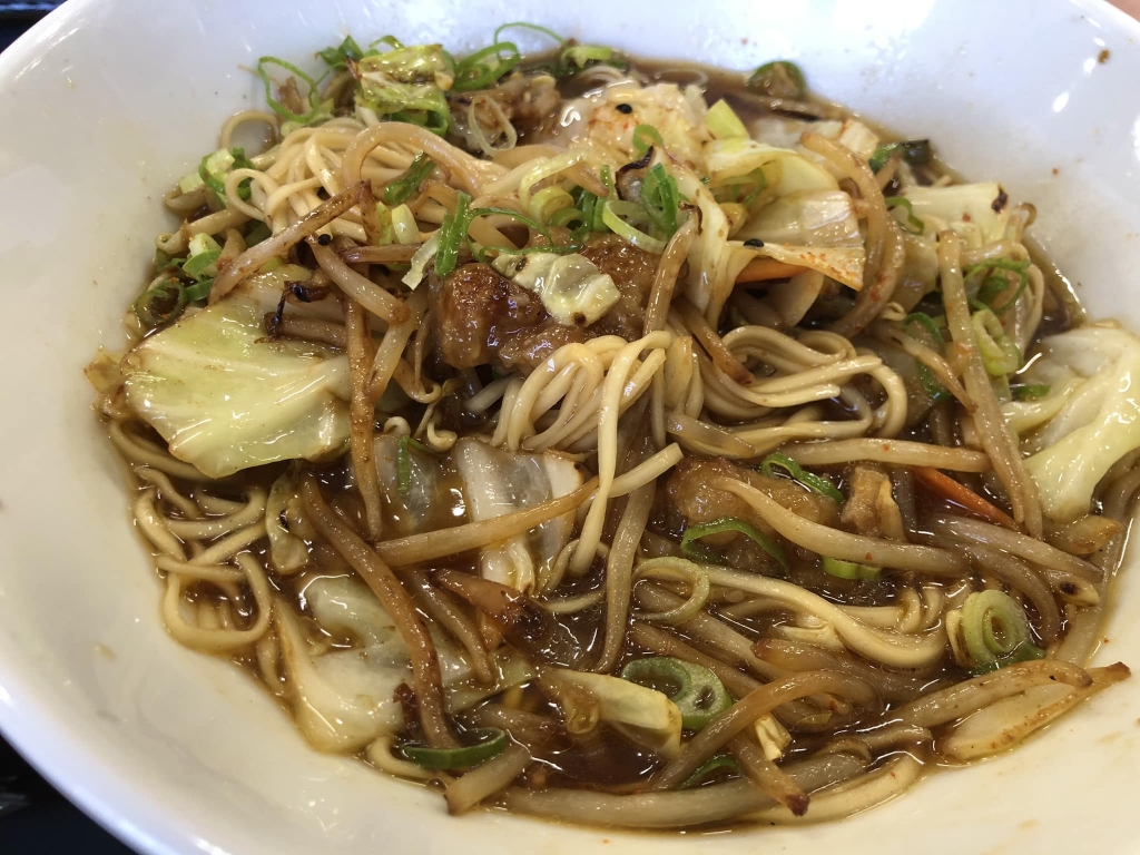 遅い昼食、「ホルモン ラーメン」。美味しいなぁ。