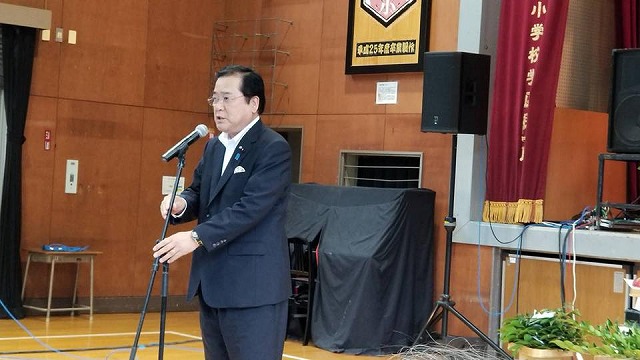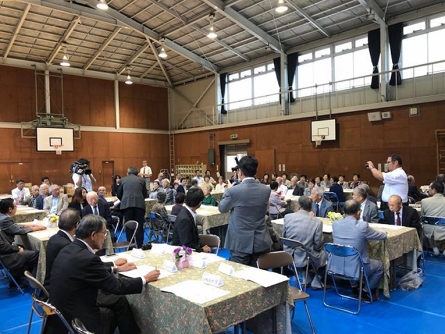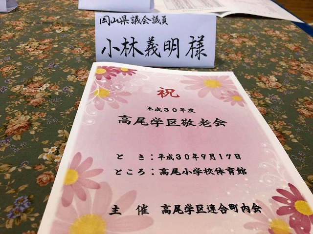 続いて、「高尾小学校体育館」で開催された『平成30年度高尾学区敬老会』(高尾学区連合町内会主催)に出席しました。おめでとうございます。一言ご挨拶の機会を頂き、ありがとうございました。(写真を送って頂きました。)