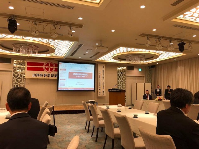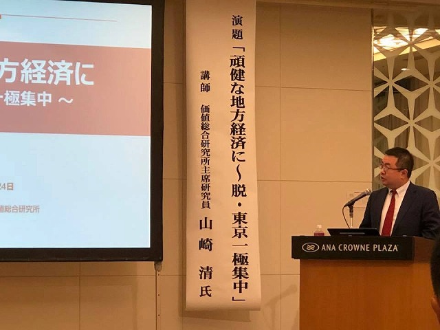 続いて岡山市内の別のホテルへ移動して、『山陽時事問題懇談会』に出席しました。今宵の講師は、価値総合研究所主席研究員山崎清氏。演題は、「頑健な地方経済に~脱・東京一極集中~」です。楽しです。
