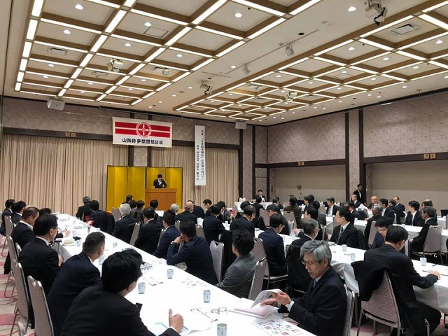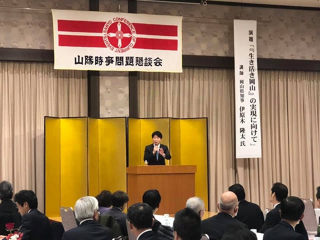 17時30分から、岡山市内のホテルで開催された『山陽時事問題懇談会』に出席しました。今宵の講師は、岡山県知事の伊原木隆太氏。テーマは、「『生き活き岡山』の実現に向けて」でした。2019年度当初予算案について話されました。市町村関係の皆様が多くご出席でした。