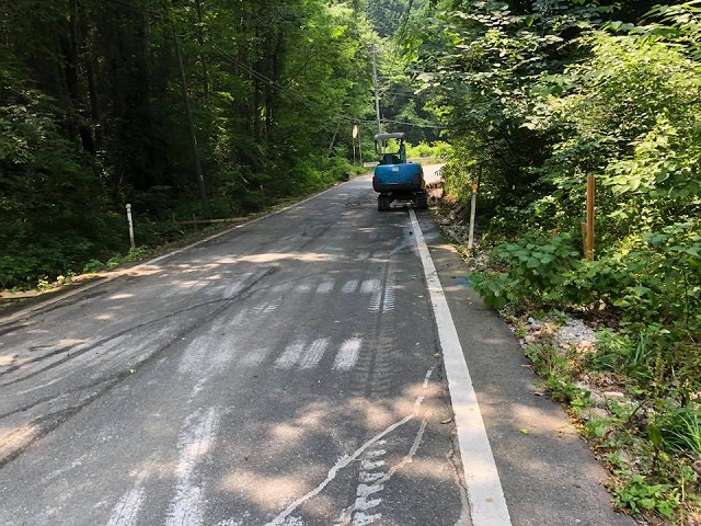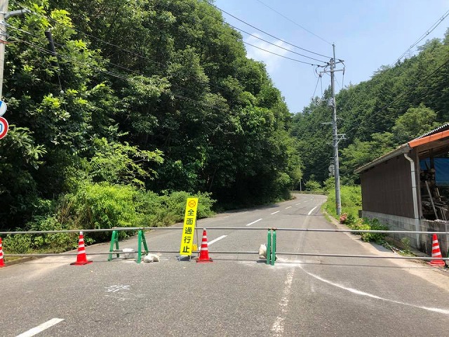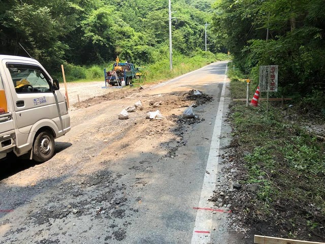 午後から、豊永地区で全面交通止めが続く県道の2回目の視察を行いました。復旧に向けて猛暑の中作業が続いています。