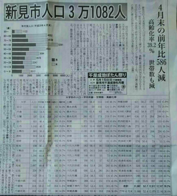 地元紙が新見市の人口統計を発表している。広域連携の道をいそがなければならないだろう。