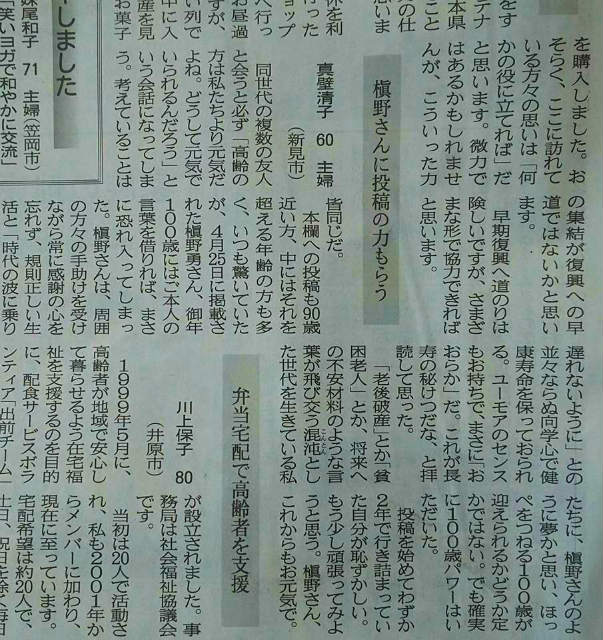 同級生田口栄次くん、真壁清子さん、山陽新聞掲載おめでとうございます。豊かな生き方だなぁ。新見市の西郷純子さん同時掲載、おめでとうございます。