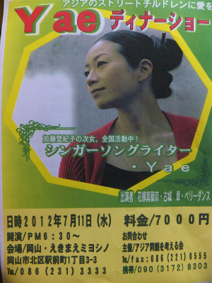 「Yae」さんは、加藤登紀子さんの次女。会場は我が尊敬する若林様