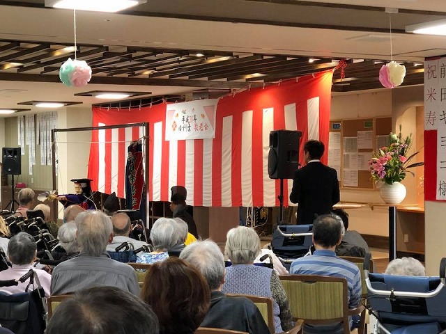 続いて、「特別養護老人ホームゆずり葉」の『平成30年度ゆずり葉敬老会』に出席しました。おめでとうございます。一言ご挨拶の機会を頂きました。ありがとうございました。