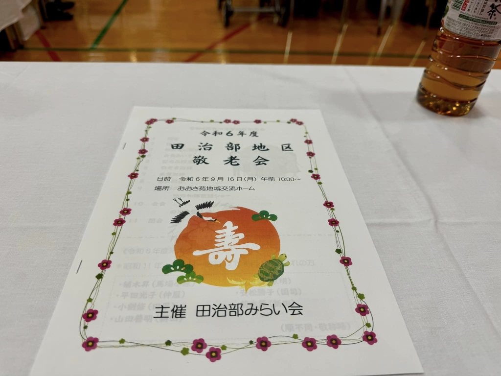 11時から、「田治部地区敬老会」に出席しました。ご開催おめでとうございます。お祝いのご挨拶をさせて頂きました。ありがとうございました。