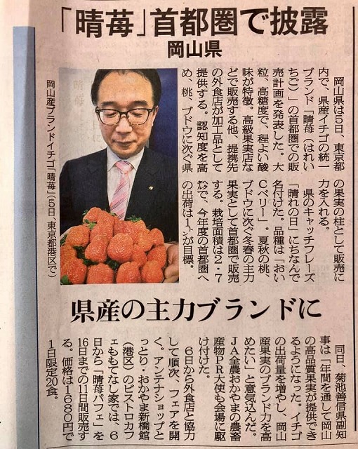 この前のフルーツパフェ会でも食した「晴苺」を、「日本農業新聞」がとり上げている。