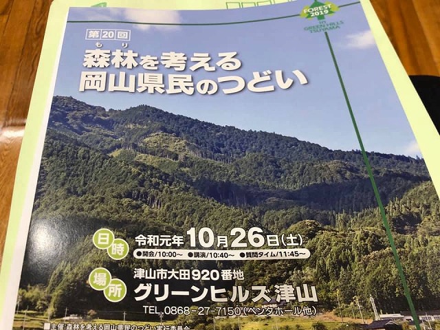 津山市の会場に入りました。10時から、「グリーンヒルズ津山」で開催される『第20回森林を考える岡山県民のつどい』に県議会農林水産委員長として出席します。