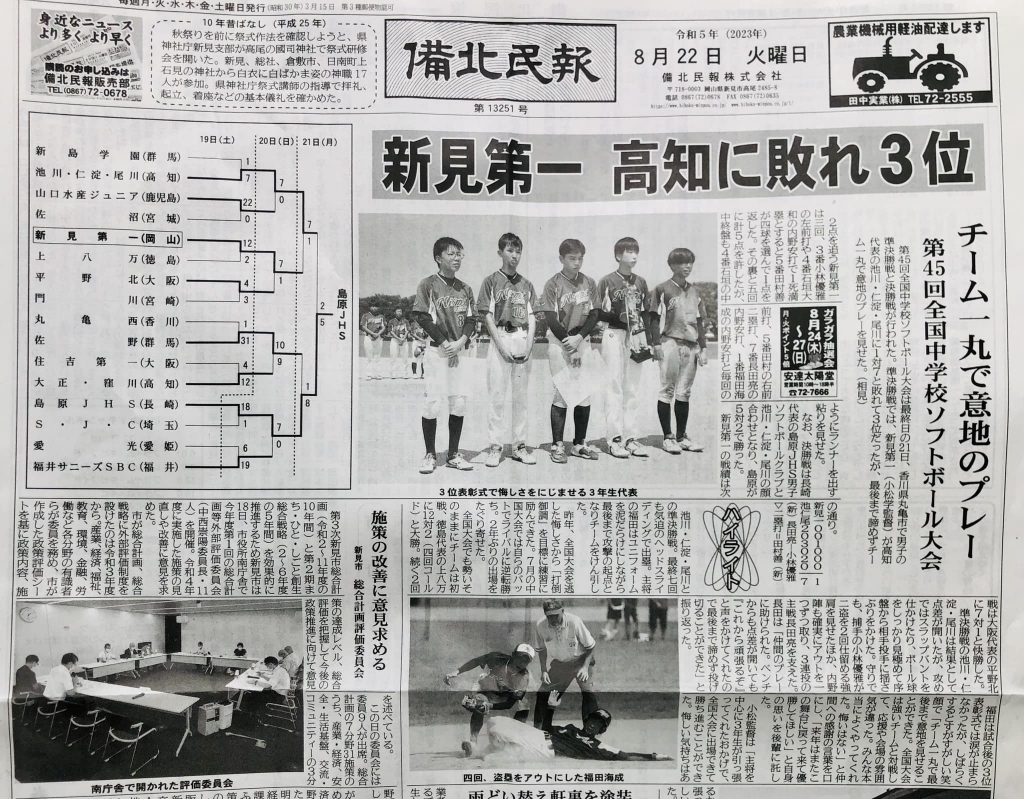 おめでとうございます。立派な成績だ。よく頑張りました。地域紙「備北民報」です。