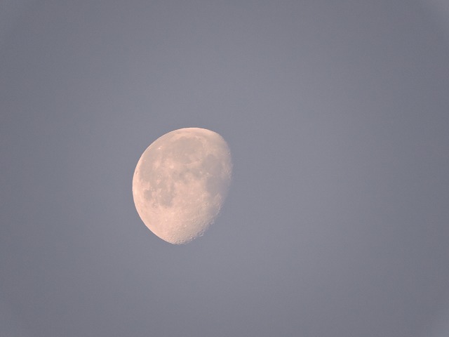 暖かい朝です。お月さん、おはようございます。これから岡山市内へ向かいます。本日もよろしくお願いします。頑張りましょう。