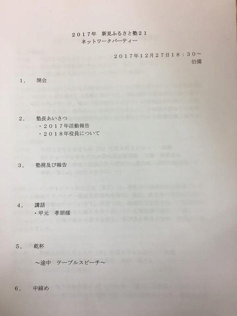 18時30分から「伯備」で開催された『2017年新見ふるさと塾21ネットワークパーティ―』に出席しました。面白い話をたくさん聞きました。