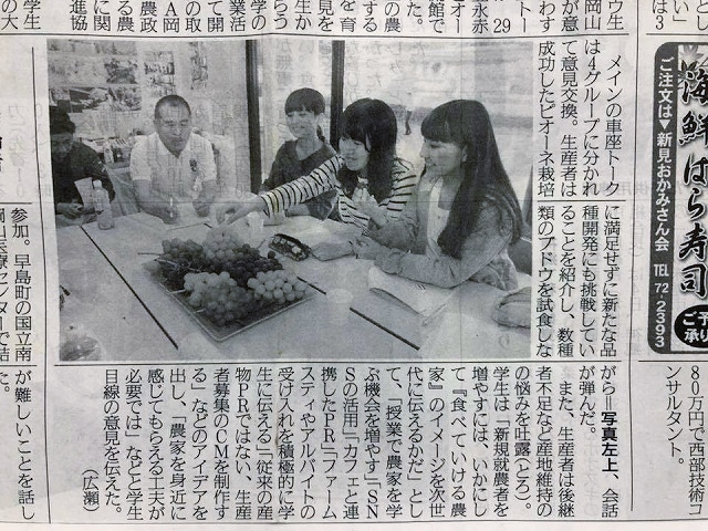 今日の地元紙「備北民報」、おお!美味しいピオーネを作る豊永の田中さんだぁ~♪