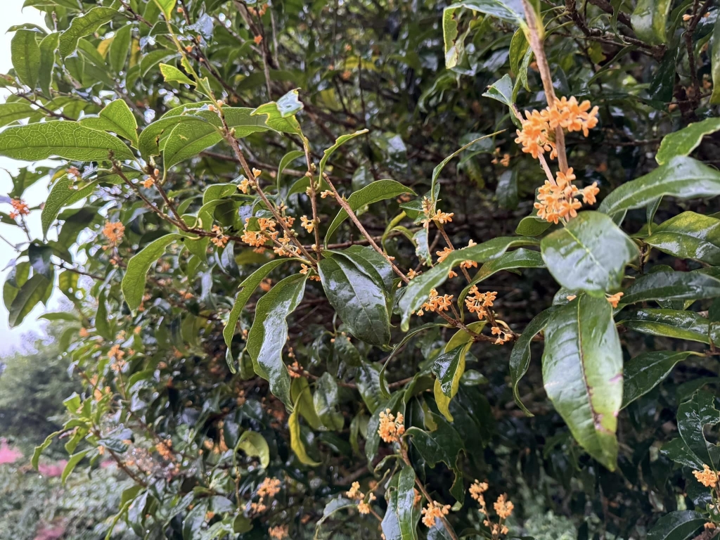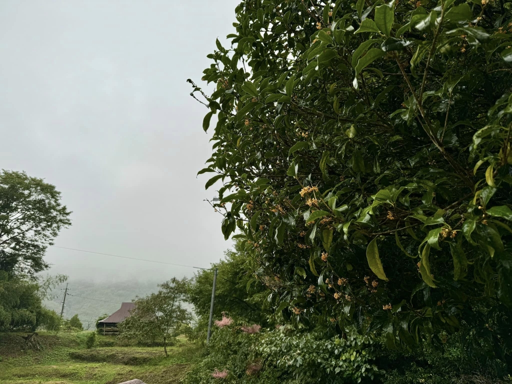 雨の朝になりました。庭のキンモクセイがいい匂い(*^-^*)
