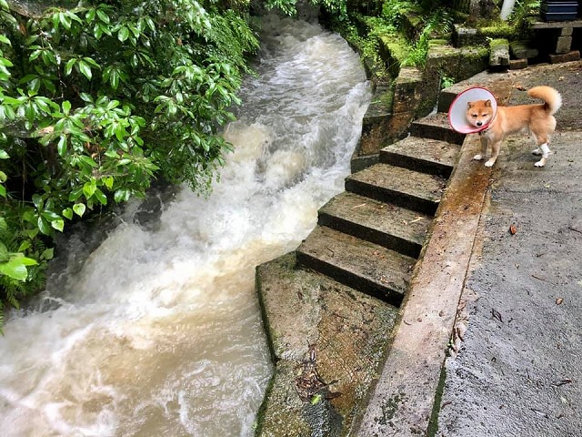 夜激しく降った雨も小康状態。朝のお散歩、ふくも元気にお付き合い。否、こちらがお付き合いかな。本日もよろしくお願いします。頑張りましょう。
