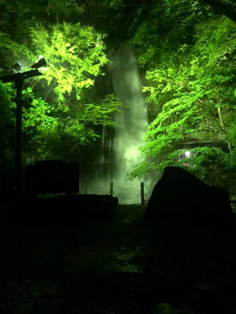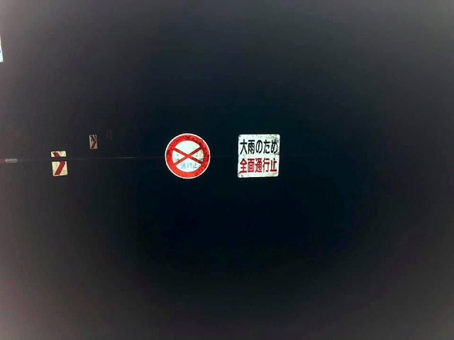 一報を頂いて、現場に来ています。国道180号、基準雨量に達した為、19時45分から新見市草間(藤井商店前)~高梁市川面の間が通行止めとなっています。ご注意下さい。規制前の「絹掛けの滝」の写真も併せて掲載します。