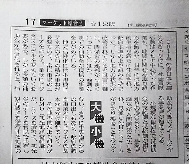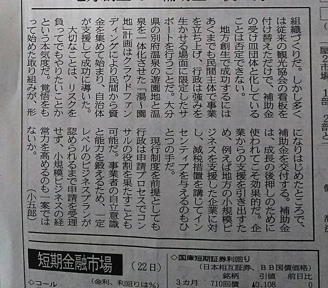 その通りだと思う。「大磯小磯」は日経新聞です。