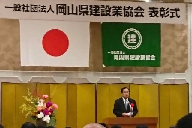 11時から岡山市内のホテルで開催された『岡山県建設業協会平成30年度表彰式』に、岡山県議会土木委員会委員長として出席しました。