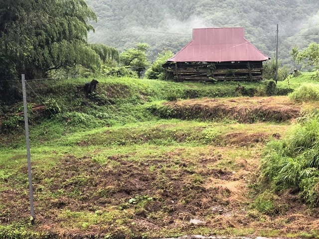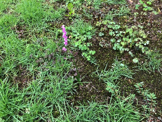 心重たい「朝のお散歩」です。テレビは朝から何度もあのニュースを伝えている。人間とはなんであるのか?と、庭に一本のネジバナ。