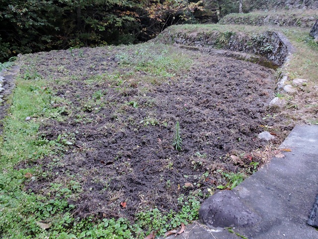 暦の上では今日から冬、「立冬」の「朝のお散歩」であります。久し振りのネコ君、「おはようさん」。あらら、我が家の休耕田をイノシシが耕している。それも丹念に。