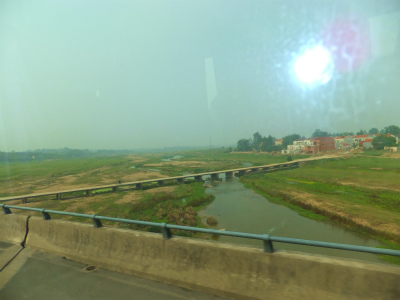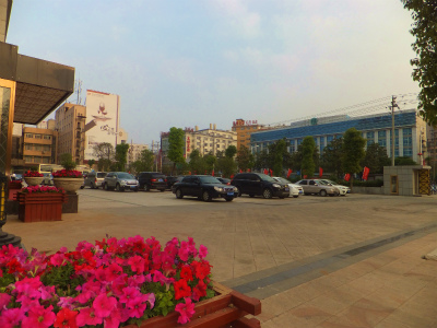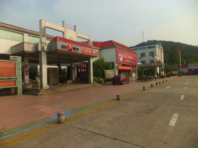 信陽市シ河区をバスで出発。         トイレ休憩のparking。