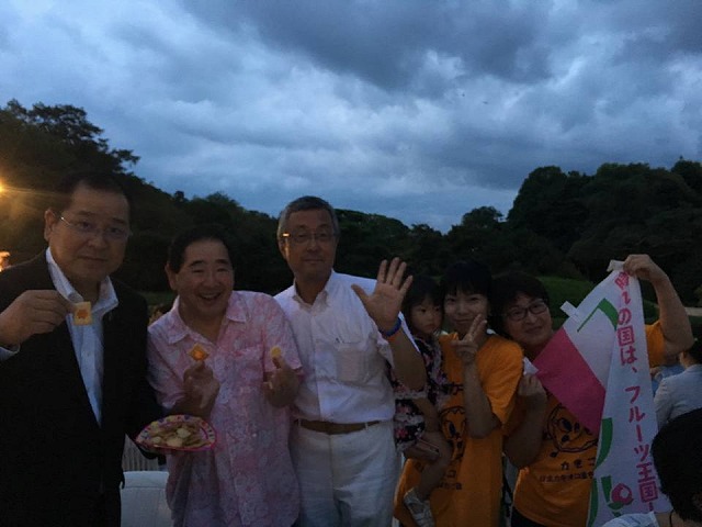 18時から、現在開催中の「後楽園~幻想庭園・ビアガーデン会場」で開かれた『第43回フルーツ王国おかやまフルーツパフェ研究会』に出席しました。松崎牧場のパフェを楽しみました。ありがとうございました。帰宅の途に就く頃には、岡山城がライトアップされて美しかった。スマホでも綺麗に撮ることが出来ます。お出かけ下さい。